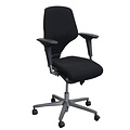 Tweedehands Giroflex 64 Bureaustoel voorzien van nieuwe zwart stoffering. Dit betreft de uitvoering met 3D armleggers. Enorm goed zitcomfort door vorm van de rugleuning.